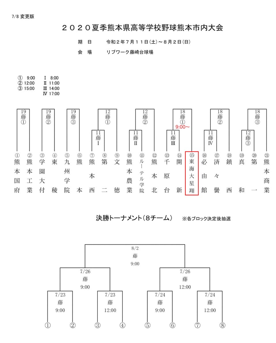 本日、熊本県高等学校野球連盟の発表があり、