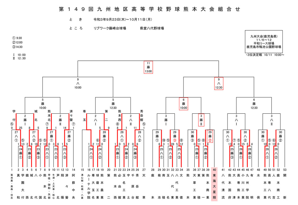初戦は9月29(水)第2試合12:00からリブワーク藤崎台野球場にて、熊本商業との戦いになります。