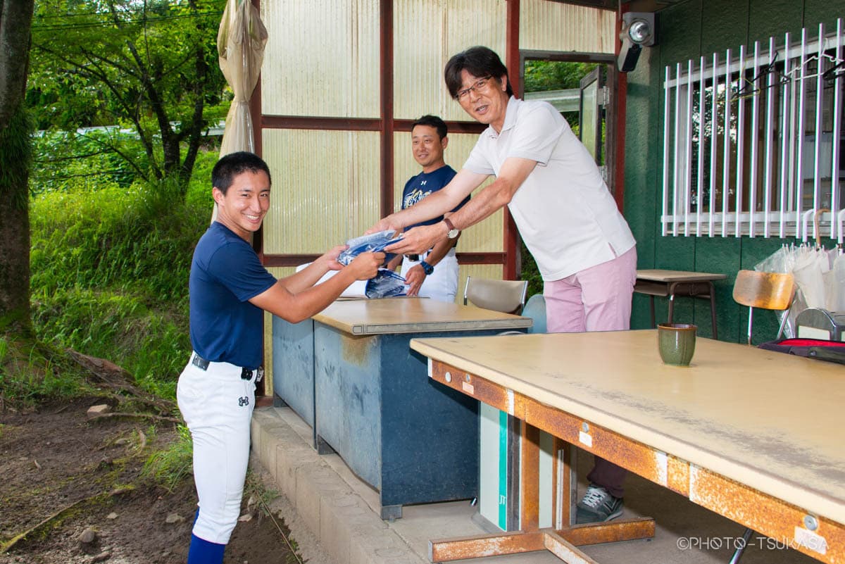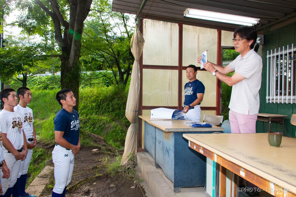 OB会からマスクとTシャツの贈呈、代替大会試合結果の報告