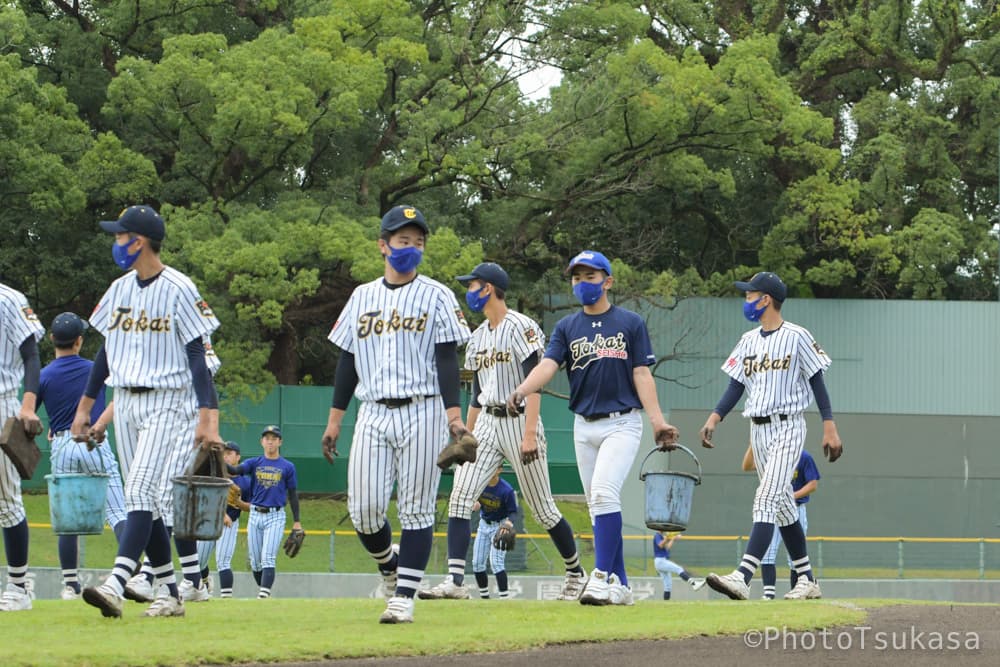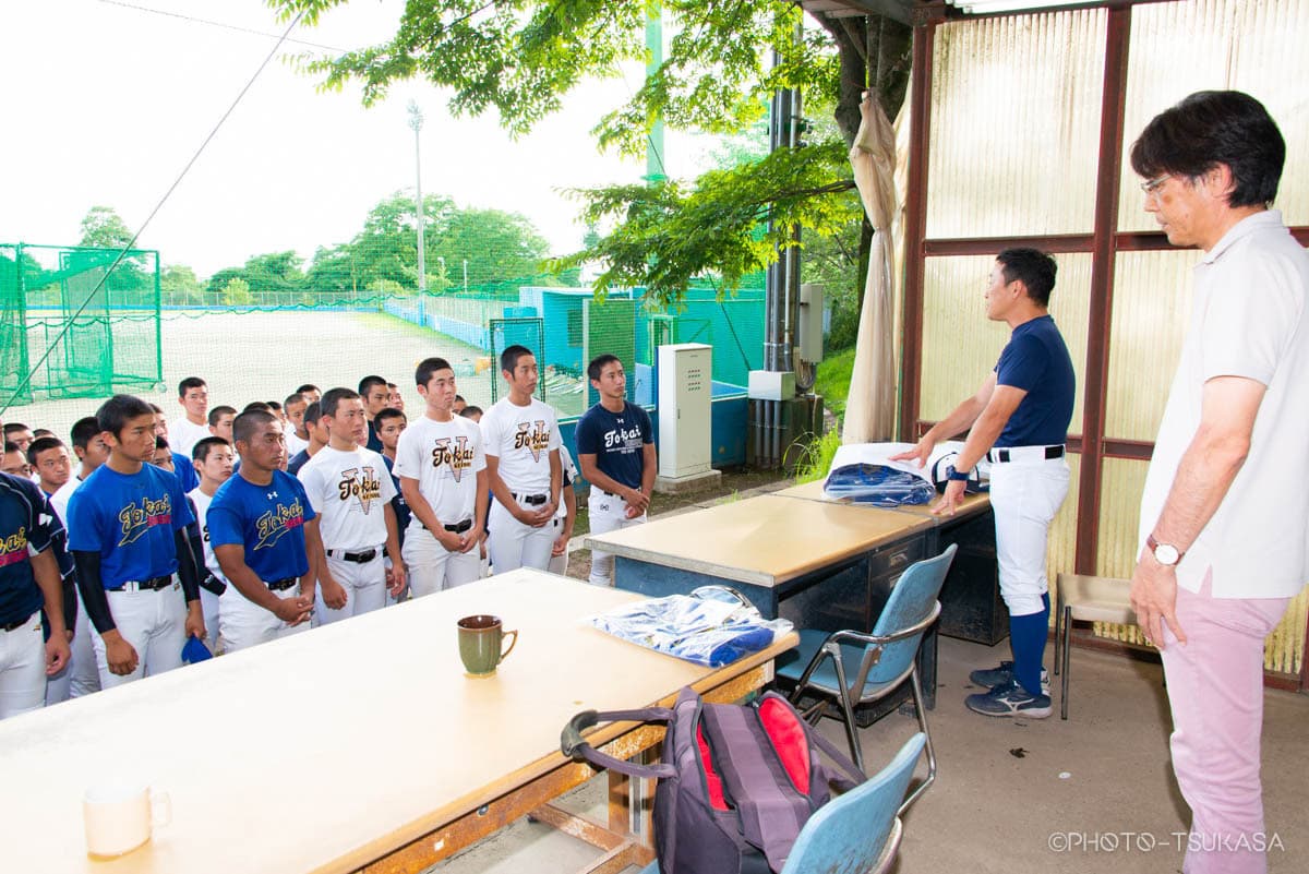7月22日、OB会より選手全員にミズノ社TOKAIロゴ入りマスク、3年生全員にオリジナルTシャツが佐野OB会副会長から贈呈されました。今年は練習や試合が思うようにできなかったと思いますが、思いっきりプレーをして欲しいと思います!