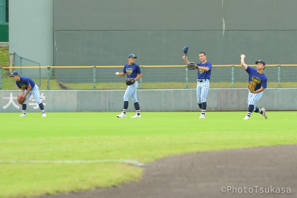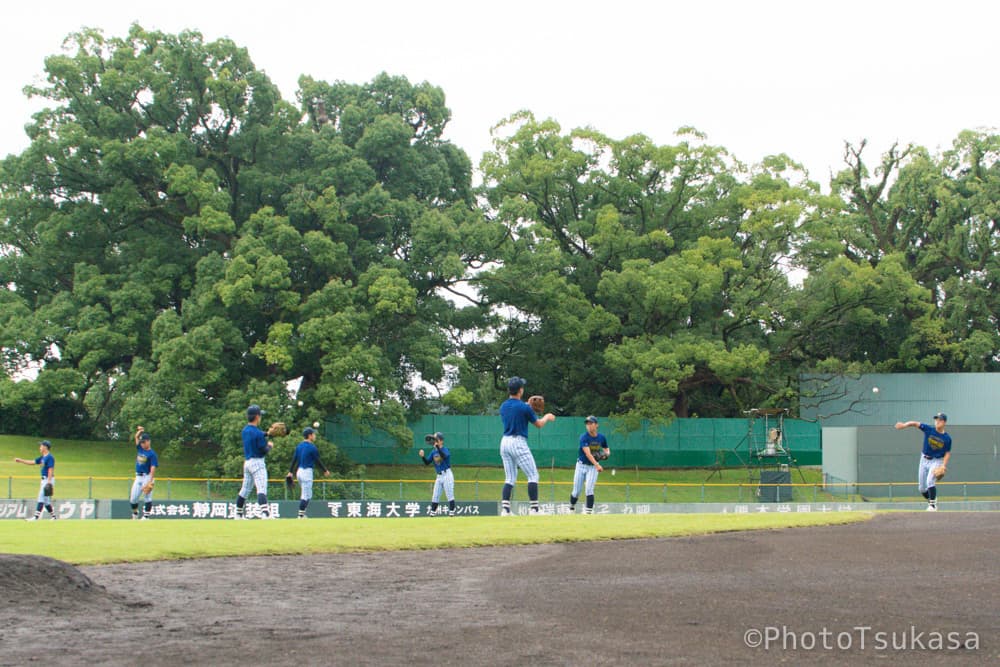 試合前のアップする直前から雨が降り、2時間近く遅れての試合開始となりました。